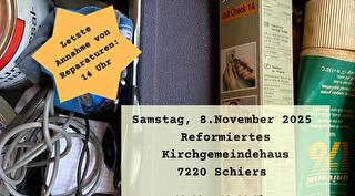 Hallo zusammen Am Samstag, 8. November 2025 kommen wir mit der ReparierBar nach Schiers. Neu haben wir einen Annahmeschluss für Reparaturen am Nachmittag um 14 Uhr. Um den Arbeitsaufwand am Nachmitta...